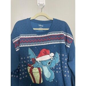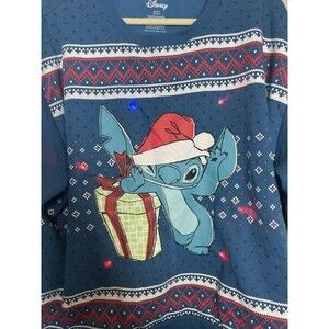Disney Stitch Ugly Christmas Sweatshirt Womens 3XL Blue Light Up Holiday