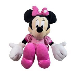 Disney Store 20” Plush Minnie Mouse Medium Pink Polka Dot Velour Dress Stuffed