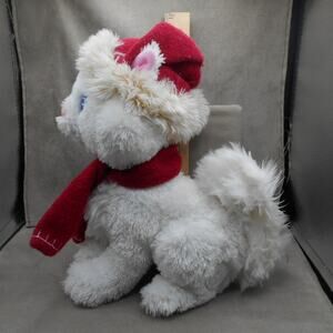 Disney Store Aristocats Marie Winter Christmas Plush Whip Stch 11" White Cat. From the Disney movie Aristocats, it's Marie, Duchess' only daughter. She decked out for the holidays with her red hat and matching scarf. Has official Disney Store patch on her leg. Measures approximately 11 inches tall. Please see pictures.