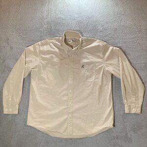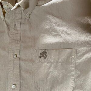 Disney Store Button Up Men's Large Tan/Beige Micky Mouse Long Sleeve Embroidered