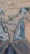 Charming dress reminiscent of Cinderella's iconic gown. This delightful dress features a light blue satin-like bodice adorned with silver trim and a decorative cameo at the neckline. The dress boasts short, puffed sleeves with sweet bow accents. A layered skirt with a shimmering tulle overlay completes the look, creating a magical and enchanting effect. Measurements are in photos, see photos. Clothes sizes vary, you may want to measure a similar piece you own and compare it with the Measurements in the photos.
