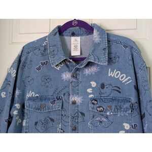 Disney Store Critters Blue Denim Shirt Jacket Adult Large Pluto Meeko Percy Gus