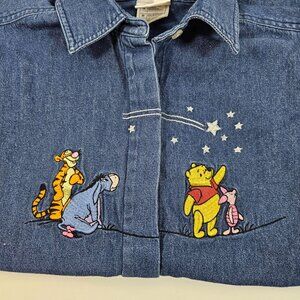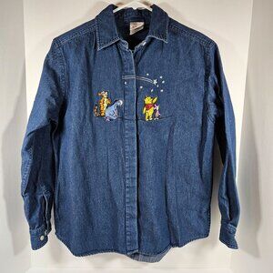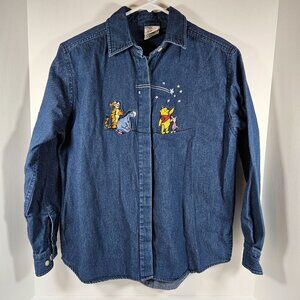 Disney Store Denim Shirt Winnie The Pooh Tigger Eeyore Piglet Embroidery Medium