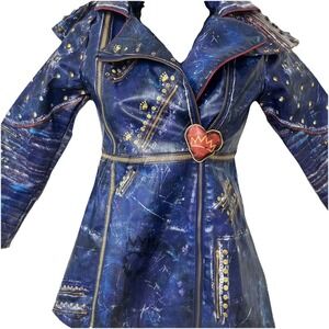 The Disney Store Descendants Evie Halloween costume Trench Coat Jacket in size 7/8 is a stylish and colorful piece perfect for dresses up as the character Evie. This multi-color jacket features a trench coat style with unique details that will make any girl feel like a Disney princess. Whether for Halloween or just for fun, this costume jacket is sure to add a touch of magic to any young Disney fan's wardrobe. Pre-loved, excellent condition. EUC.