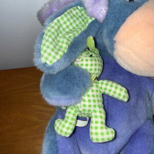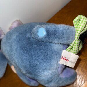 This Disney Store Eeyore Easter plush features soft blue and purple fabric, gingham bow, and bunny ears, making it a delightful collectible or gift.