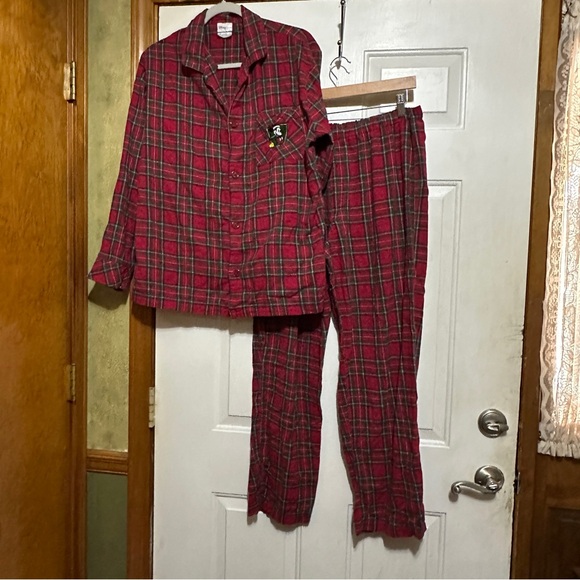 Disney Store Embroidered Mickey Mouse Red Plaid Pajama Set Christmas Size M
