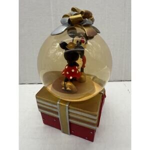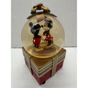 The product is a Disney Store Exclusive Snow Globe featuring Mickey and Minnie Mouse from the year 2008. This collectible item is part of the Disney franchise and is decorated with festive holiday decorations to bring a touch of magic to any Christmas display. Perfect for fans of Disney and collectors, this snow globe captures the charming essence of these beloved characters in a unique and timeless design.