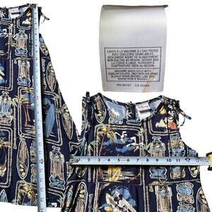 Palm trees, bamboo frames, and tiki - dainty bows on top of shoulders - 5 button closure on back