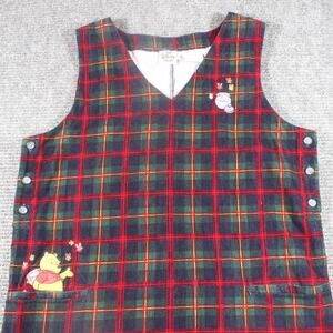 Disney Store Jumper Womens Medium Red Green Plaid Corduroy Winnie the Pooh