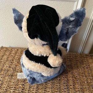 Excellent condition. Never a toy! Beautiful velvet outfit! Big ears! Christmas themed. Really soft! Clean home. 10 inches tall. Older!