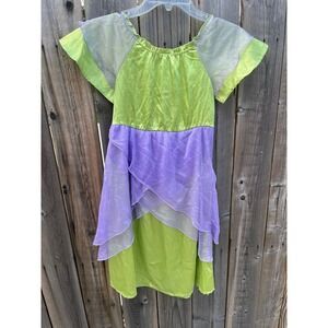 Disney Store Little Girls Green and Purple Satin Tinkerbell Fairy Costume 4