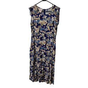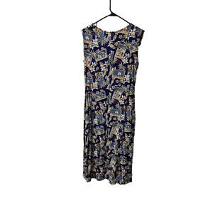 Disney Store Maxi Dress Size M Mickey Minnie Blue Tiki Beach Tropical Hawaiian