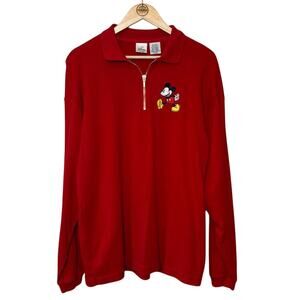 Disney Store Men’s Embroidered Mickey Mouse 1/4 Zip Long Sleeve Polo Red Men’s L