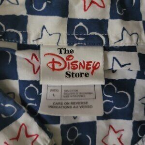 Disney Store Mens L All Over Checkerboard Mickey Mouse Cotton Button Front Shirt
