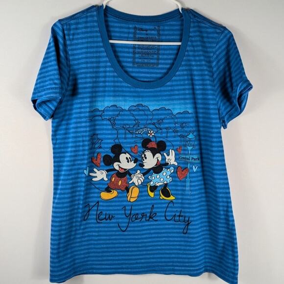 Disney Store Mickey Minnie New York City Graphic T Shirt XL Blue Stripe Tee