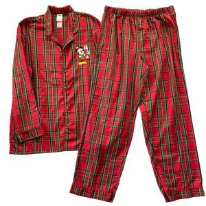 Disney Store Mickey Mouse Pajama Set Mens Size Extra Large Plaid Flannel Santa