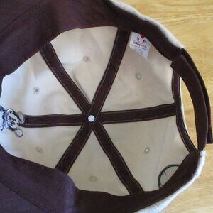 hook and loop closure. This hat is in excellent pre-owned condition. No holes, rips, tears or stains that I can see.