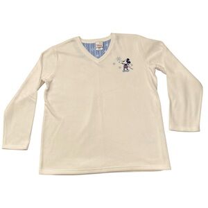 Fleece long sleeve white top with embroidered Mickey Mouse on front