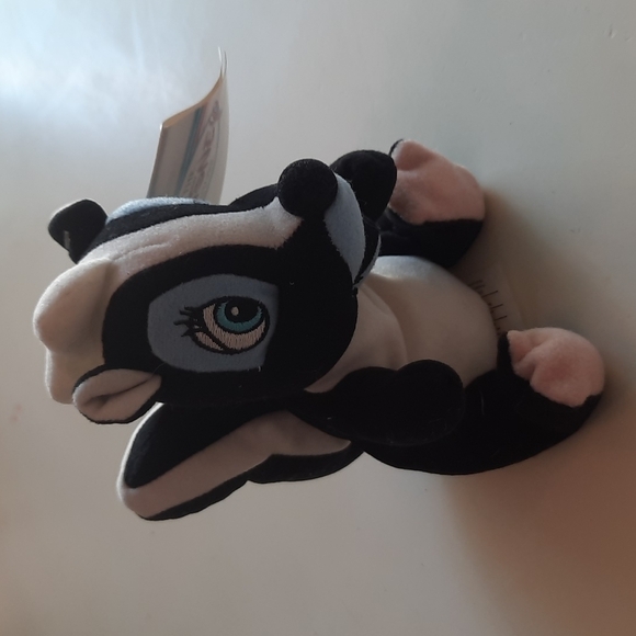 Disney Store Mini Bean Bag Flower Bambi new with tags. Smoke free pet friendly home. Please see pictures for measurements. New with tags beanie baby bean bag Flower Bambi Disney Store