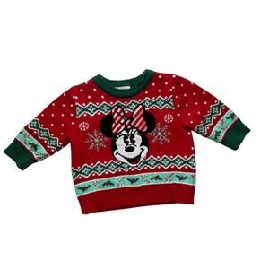 Disney Store Minni Mouse Holiday Sequin Bow Sweater Size 0-3Months