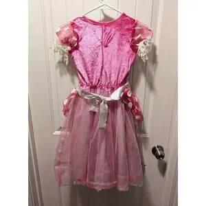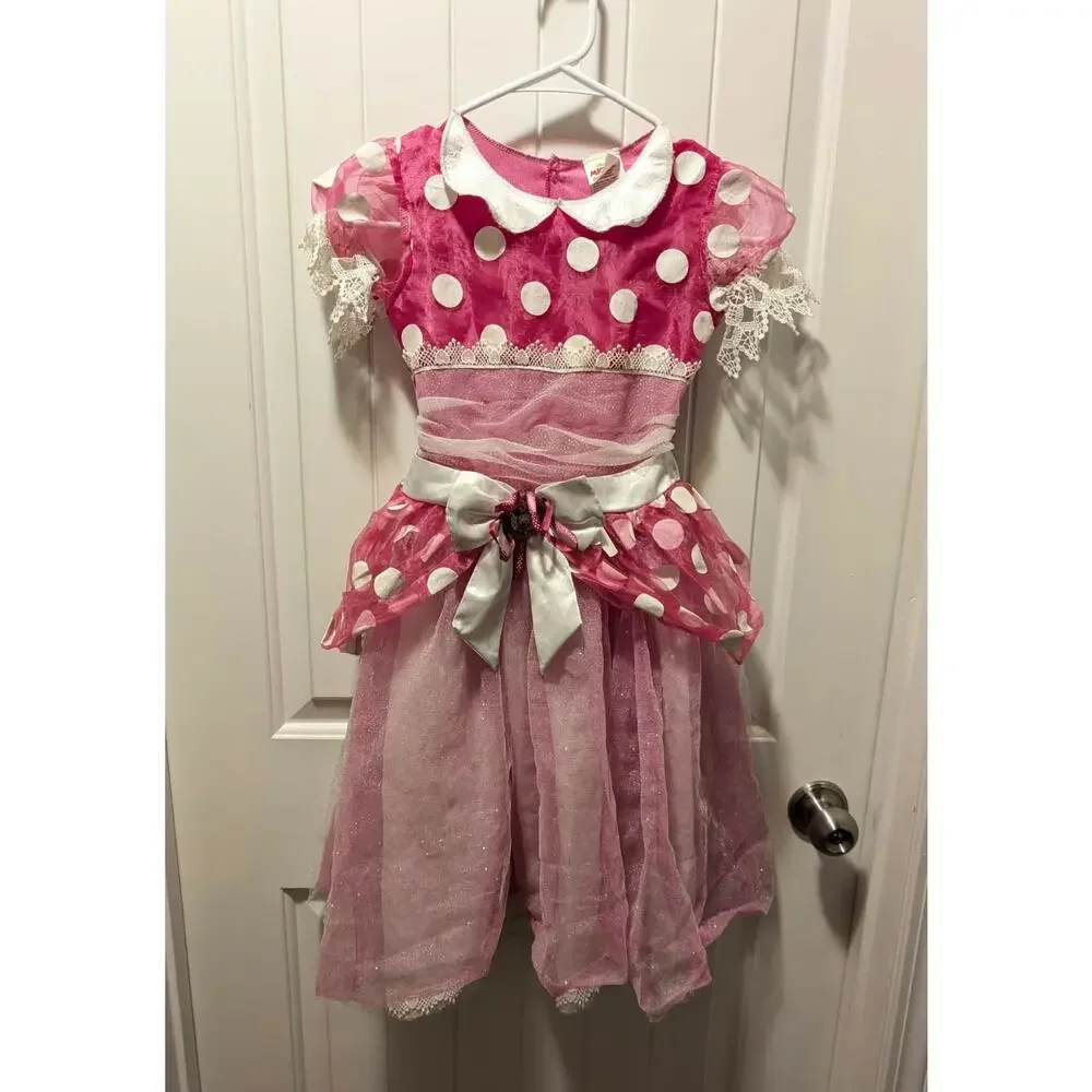 Disney Store Minnie Mouse Pink White Princess Dress Halloween Costume Size S 4-6