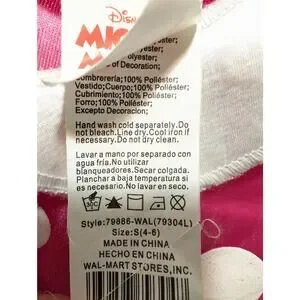 The Disney Store Minnie Mouse Pink White Princess Dress Halloween Costume in Size S (4-6) is a cute and stylish outfit perfect for young girls who love the iconic Minnie Mouse character. Made of polyester spandex material, this dress features an elastic/stretch design for comfort and ease of movement. The pink and white color combination and Disney branding make it a charming choice for Halloween or dress-up play. This costume is a must-have for any Disney fan looking to channel their inner Minnie Mouse.
