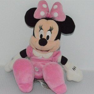 Disney Store Minnie Mouse in Pink Polka Dot Dress and Bow Plush Doll Soft Bean Bag Lovey Toy Stuffed Animal Figure. Measures about 9" tall. From smoke free home and in excellent condition.