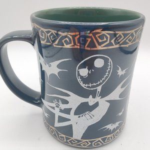 Large mug holds around 10-12 Oz of liquid and features everyone’s favorite undead character against a dark bottle green background with a white glitter finish. Jack Skellington mug exclusively sold at the Disney Store. Used in excellent condition, no chips or cracks!
