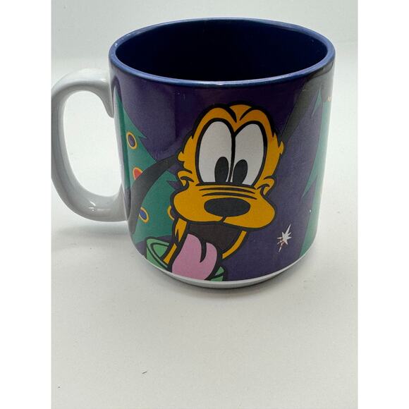 Add some Disney magic to your holiday mornings with this adorable Pluto Christmas mug! This fun and festive mug features Pluto and a Christmas Tree, ready to spread some Christmas cheer. It's the perfect way to enjoy your favorite hot beverage while celebrating the season. This mug is in excellent condition with no chips or cracks. It is a must-have for any Disney collector or Pluto fan. Get ready to make your mornings merrier with this delightful mug! It is a great gift for that special someone. It will be packaged with extra care. There is a rubbing on the top rim by the handle.
