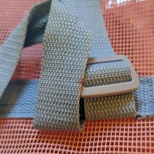 This bag is in very gently used condition. There is a tiny pink mark on the handle strap (see photo,) but it looks new otherwise.