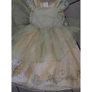 Disney Store Princess Tiana Costume Dress Girls Size 4 Green Gold Glitter Flower
