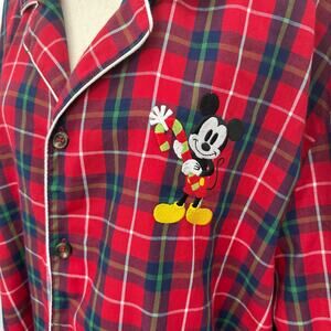 Disney Store Red Holiday Plaid Button Up Shirt XL Mickey Mouse Embroidered sleep