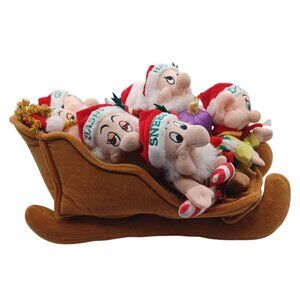 Disney Store Snow White & 7 Dwarves Plush Santas Sleigh Vintage Christmas Decor