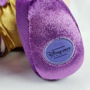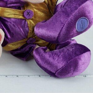 This Dopey plush is decked out in his finest purple and gold attire, looking like he's ready for a disco instead of a diamond mine.