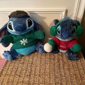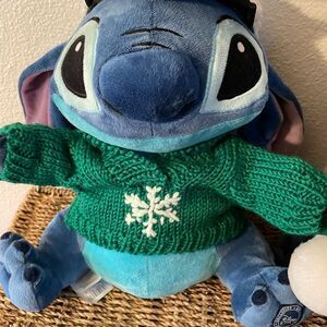 Disney Store Stitch Christmas Plush Naughty Winter Green Knit Sweater set of 2!