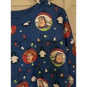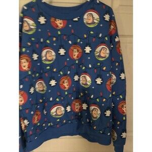 This Disney Store Toy Story Light Up Holiday Sweater in XXL features Woody and Buzz Lightyear from the beloved Toy Story franchise. The colorful multicolor sweater is designed for unisex adults with a regular size fit and a pullover style. The long sleeve sweater has a round neckline and is perfect for adding a touch of holiday cheer to your wardrobe. It is a fun and festive piece that will brighten up your Christmas season.