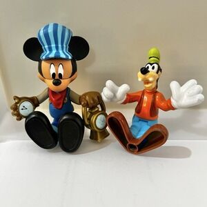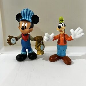 Disney Store Train Conductor Engineer Mickey Mouse PVC Figure 3.5" & Goofy 3"