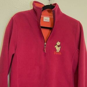 Disney Store - Embroidery Winnie the Pooh Magenta Fleece 1/4 Zip Long Sleeve - size M (labeled as a sample - see measurements below - perhaps a girl's size)