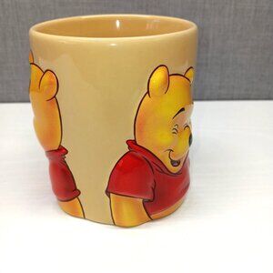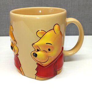 Disney Store Winnie the Pooh 3D Ceramic Mug 16 oz Yellow Red Embossed Coffee Cup