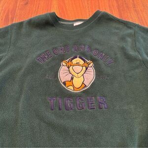 Disney Store Winnie the Pooh Tigger green fleece sweatshirt. Some wear on letters. 100% polyester. Armpit to armpit 22 inches. Length 24 inches. Size medium. Good condition!