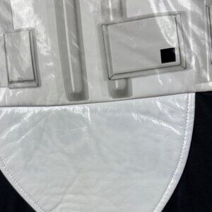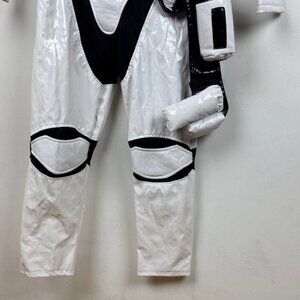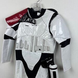 Suit up for adventure with this Disney Storm Trooper costume. Says size 7/8. From the Disney Store. Velcro on the back. Bold white and black design. Perfect for superhero play. Know that it does have faint spot on front and back as well as a few tiny holes in the back (see pictures) Fantastic Star Wars costume for this Halloween!