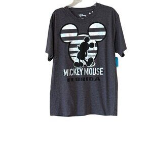 Disney Striped Silver Mickey Mouse Florida Gray Tee Shirt Size Small 34/36 NWT