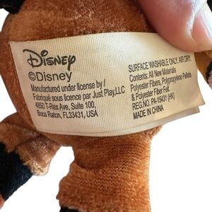 This charming Disney stuffed animal showcases Mickey Mouse in a delightful plush form, featuring a vibrant orange body and classic black accents. With its soft texture and cheerful expression, it's perfect for cuddling and imaginative play.