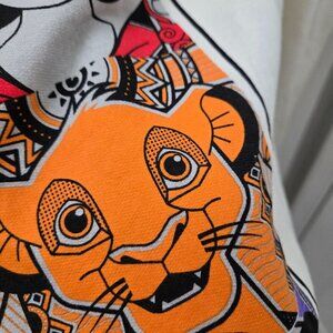 In the enchanting world of Disney, these ivory cream sweatpants celebrate a century of timeless tales and beloved characters. Adorned with vibrant prints of iconic figures like Simba and Mickey Mouse, they offer comfort and nostalgia. Crafted from a cotton-polyester blend, they invite you to relive magical moments with every wear.