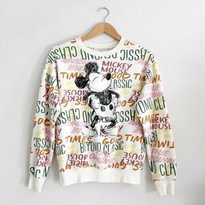 Disney Sweatshirt Mickey Mouse Beyond Classic All Over Graffiti Cream Size XS