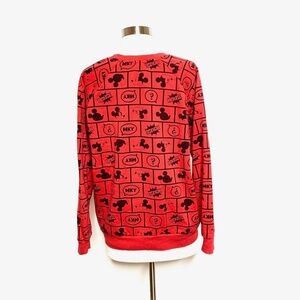 Red and Black Sweatshirt with Mickey Mouse Graphic. Long Sleeve. Crew Neckline.