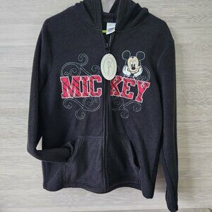 Disney Sweatshirt Women XL Black Hoodie Mickey Mouse Graphic Full Zip Pocket NWT