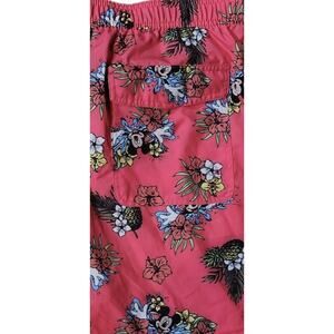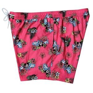 Disney Swim Trunks Mens 2XL Neon Pink Floral Hawaiian Mickey Mouse EUC