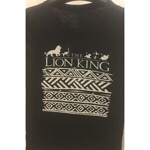 Pre-Owned Very Good Condition Disney Women's The Lion King Black & White T-Shirt Cap Sleeves Crew Neck Ladies Top Geometric Design Pattern Cotton Blend Size S Made in China Top To Bottom: 25.5" Underarm To Underarm: 16.5"