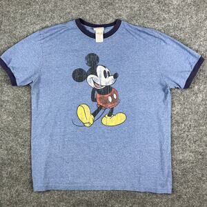 Disney T-Shirt Mens XL Blue Ringer Mickey Mouse Graphic Walt Disney World Retro